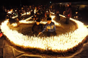 震災12時間前の午後5時46分に参加者が火をともし東日本大震災の犠牲者の冥福も祈った。