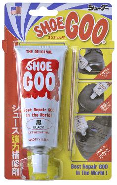 シューグーは、チューブから絞り出した時は練り状ですが、修理面に塗って乾かすと ゴム状に変化します