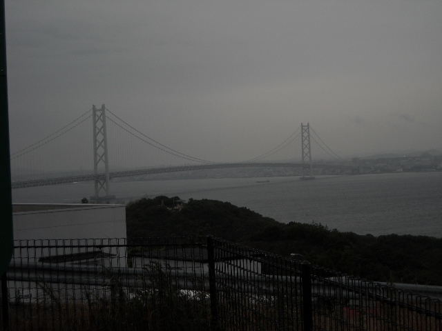 左から明石大橋、淡路パーキングエリア