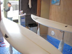 シェイパー自身もラミネート、サンディングなど全工程行える技術者なのでクラフトマンとのリレーションシップも万全でユーザー1人1人の希望に添 えられる事と思います。